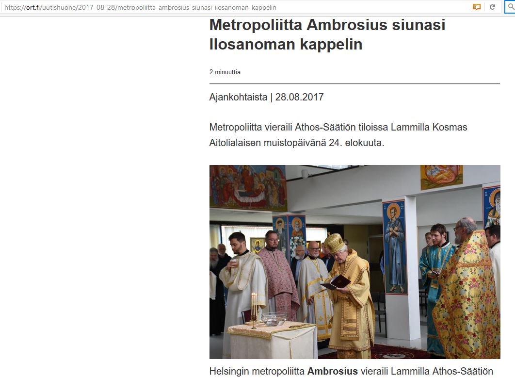 KP Helsingin metropoliitta Ambrosius: Ilosanoman kappelin vihkiminen, Lammi 24.8.2017